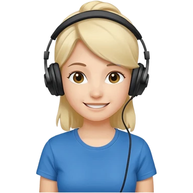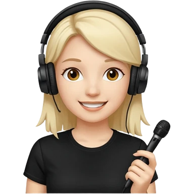 Female, happy, wearing headphone having mic, t-shirt emoji