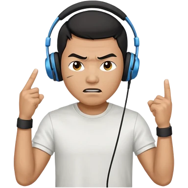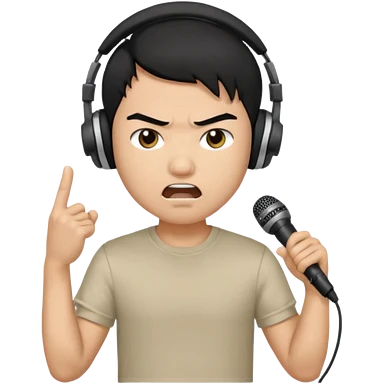 asian Male, angry, wearing headphone having mic, t-shirt emoji