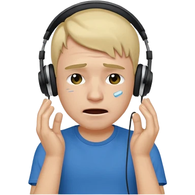Male, crying, wearing headphone having mic, t-shirt emoji | AI Emoji Generator