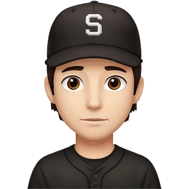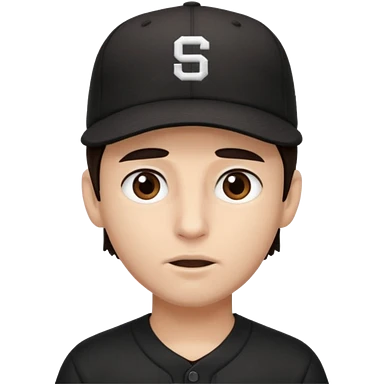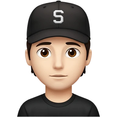 male, dark brown hair, dark brown eyes, fair skin, black baseball hat, no smile emoji