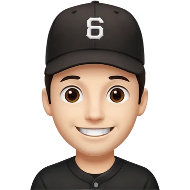male, dark brown hair, dark brown eyes, fair skin, black baseball hat, dry fit tee emoji | AI Emoji Generator
