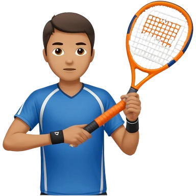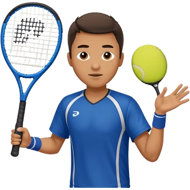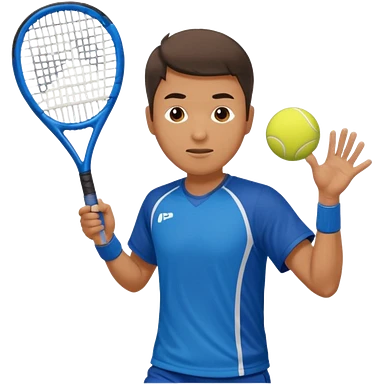 crear un hombre de tes blanca sin barba, con ropa deportiva azul con una raqueta en su mano emoji