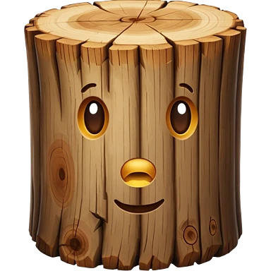 caricature of a smiling wooden log with big eyes, arms raised, apple emoji style, white background, cute and colorful emoji