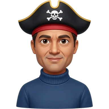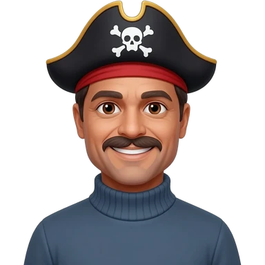 middle aged male indian primary school teacher looks like brad pitt without a moustache wearing a thick plain roller-neck jumper with a pirate headband emoji