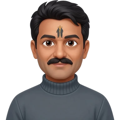 middle aged male indian primary school teacher without a moustache wearing a thick plain roller-neck jumper with a harry potter forehead mark emoji