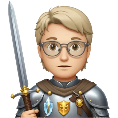 Knight holding sword, wearing glasses — glasses shining reflection emoji