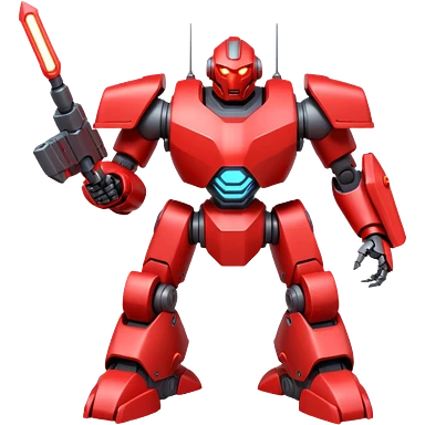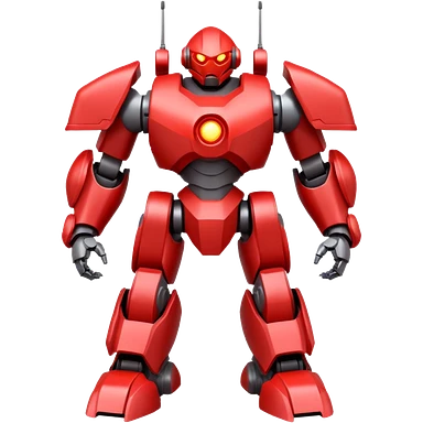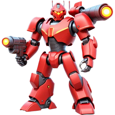 powerful battle robot, bulky armor, sharp edges, glowing red lights, large shoulder cannons, intimidating pose, 3D cartoon, mobile game icon style, clean background, no text, no watermark emoji