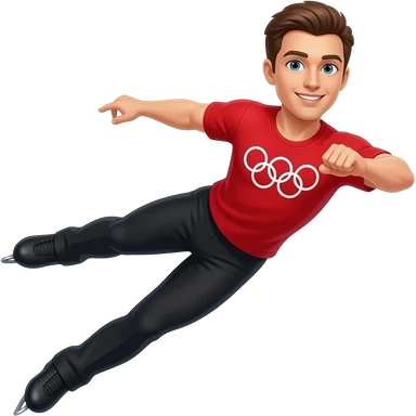 male olympic figure skater wearing red shirt with olympic logo emoji
