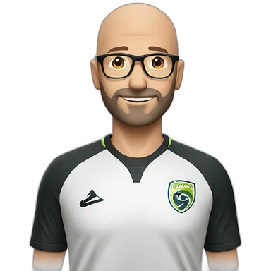 Soccer 43 year slim male bald short beard glasses emoji