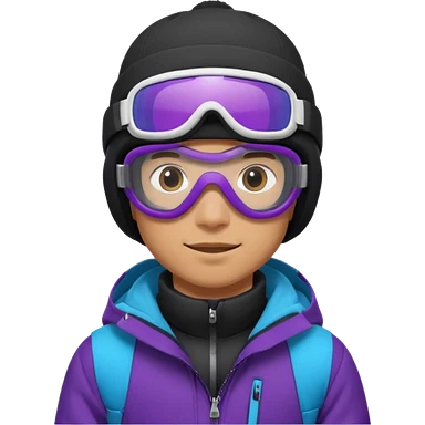 male Pro Snowboarder with white beanie, ONE pair of purple and blue frameless goggles and a black jacket emoji