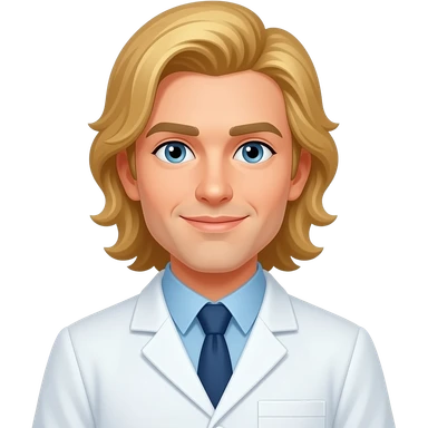 male, lab scientist, blonde, pony tail, long hair, no facial hair emoji
