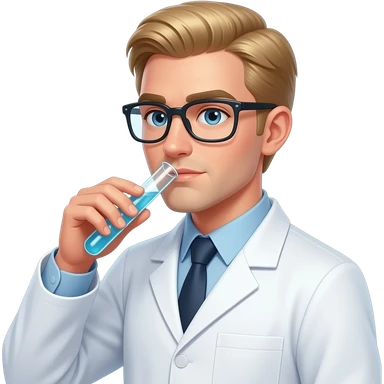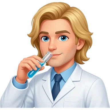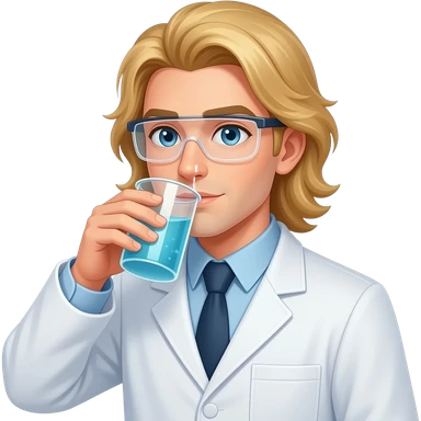 clean shaven male scientist with long blonde hair drinking from test tube emoji
