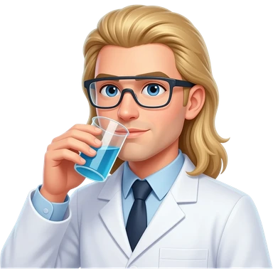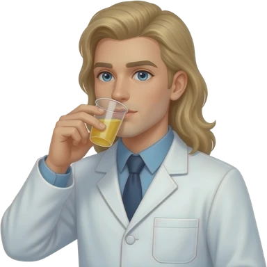 clean shaven blonde male scientist with long hair to his waist drinking from specimen cup emoji