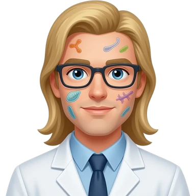clean shaven blonde male scientist with hair to his waist has specimen on his face emoji