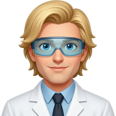male, lab scientist, blonde, pony tail, long hair, goggles emoji