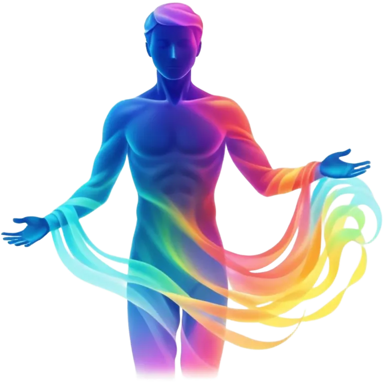 Male silhouette composed of ethereal flowing energy waves, abstract style aura forming the shape of a man, no facial featuresemoji