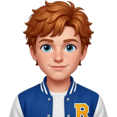 Male, teen, messy red hair, freckles, varsity jacket emoji