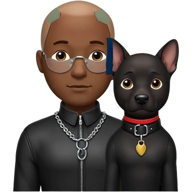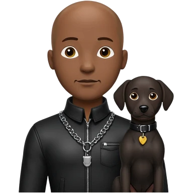 Please create a male character who is dark, bald and hardspm. He is tall well proportioned. He is wearing leather and has a leather dog collar around his neck emoji