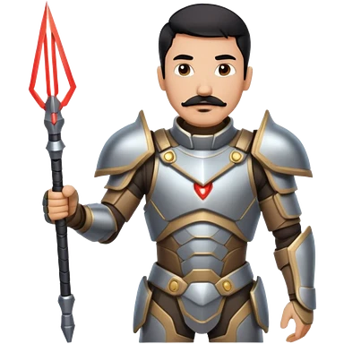 Male human with short black hair, mustache and beard. Wearing futuristic armor, with laser spear in hand emoji