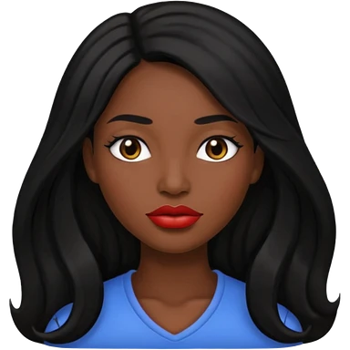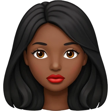 more realistic girl office, wavy lack hair, big eyes, big lips emoji