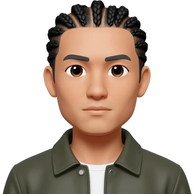 white asian male wearing jacket with no mustache conrow braids emoji