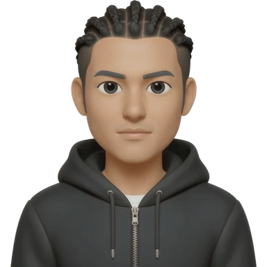 white asian male wearing hoodie jacket with no mustache conrow braids emoji