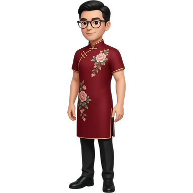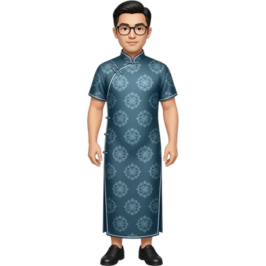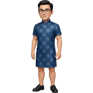 male with glasses inshort cheongsam dres. show whole body profile emoji