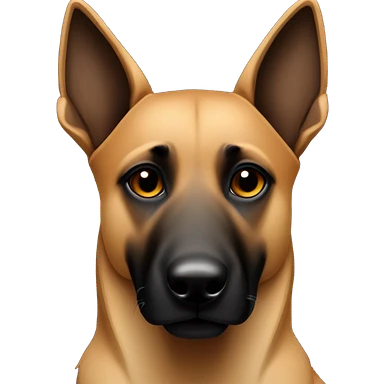 malinois dog head with star sunglasses holding a slice of Parisian flan in its mouth, the flan slice has a blue medal with a white center around it emoji