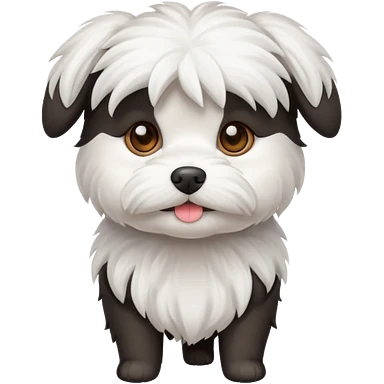 Maltese seduto in bianco e nero con vestitino in maglia emoji