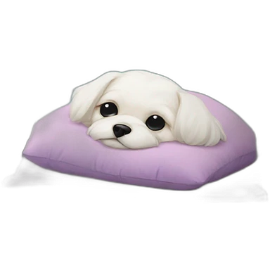small dog maltese lapdog with long ears and tail with pink elastic band on head emoji
