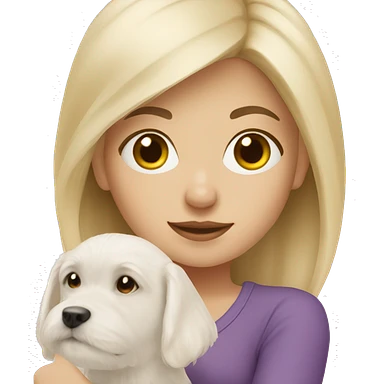 Blonde long hair brown eyes woman with white maltese puppy with pink dress emoji