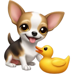 Maltipoo with white toy duck emoji | AI Emoji Generator
