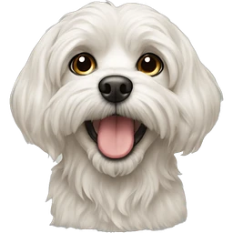 The image shows a cute illustration of a small fluffy dog . Maltipu . sitting on her paws emoji