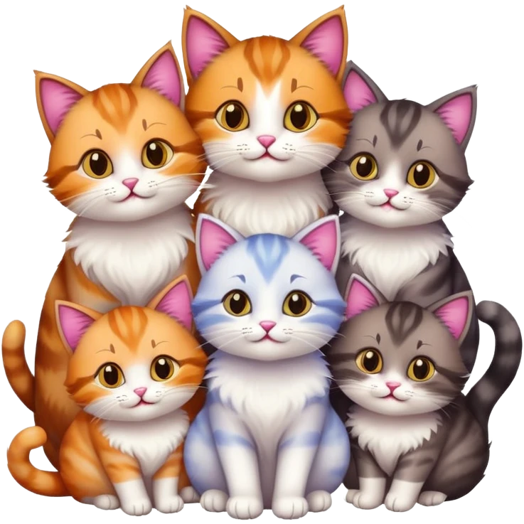 mama cat and papa cat with four happy kittens emoji | AI Emoji Generator