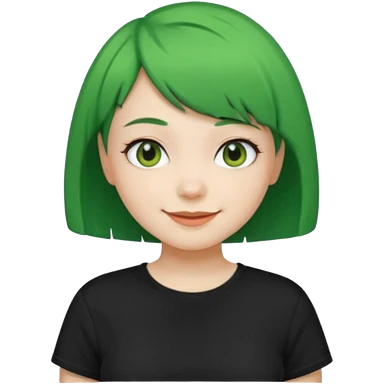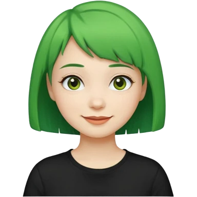 Girl with green Bob Cut – short green hair, cheerful smile, black t-shirt emoji
