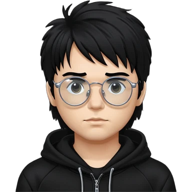 chrome hearts glasses,man, black hair,white,normal,fluffy fringe,black hoodie emoji