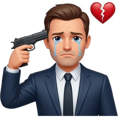 man standing alone and sad with a gun to his head and a broken heart emoji