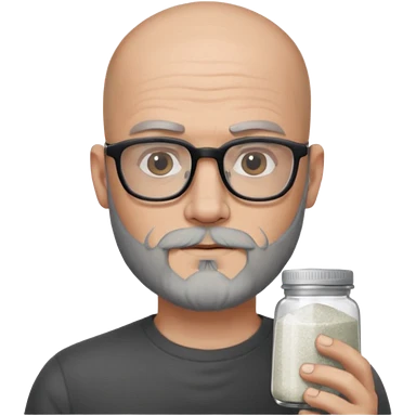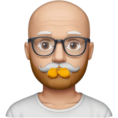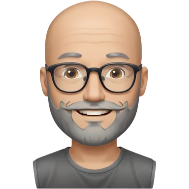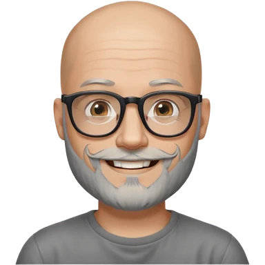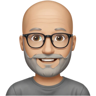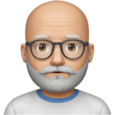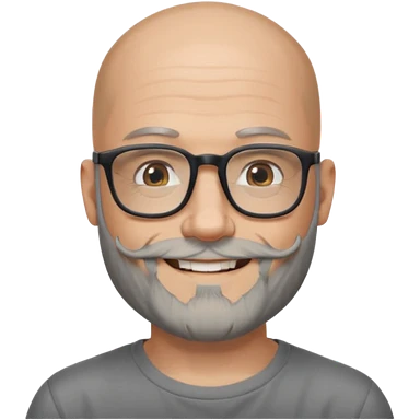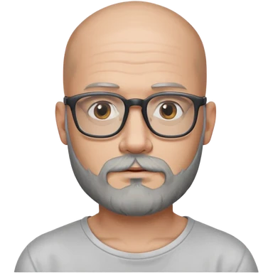 50 years old, green eyes, 2 days salt and pepper beard, bald, glasses emoji