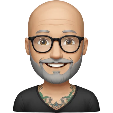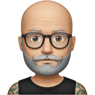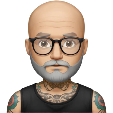 Bald man with salt and pepper beard and glasses and tattoos emoji
