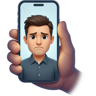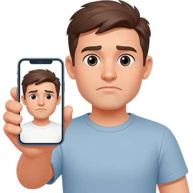 man unhappy reflection in phone screen emoji