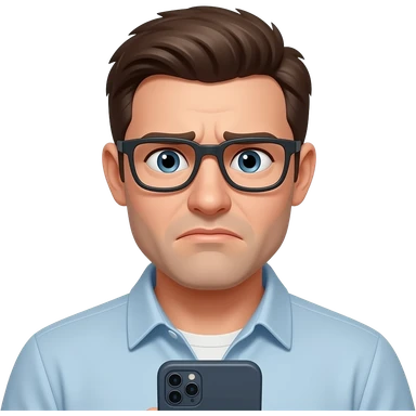 man slightly unhappy staring in phone screen emoji