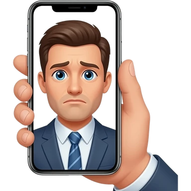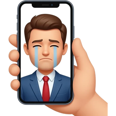 man unhappy reflection in phone screen in hand emoji