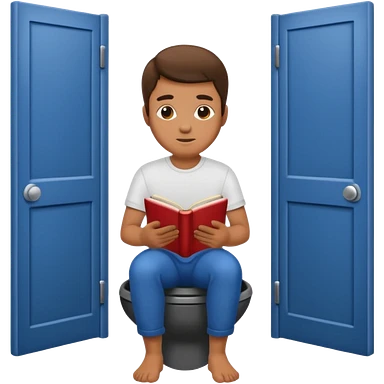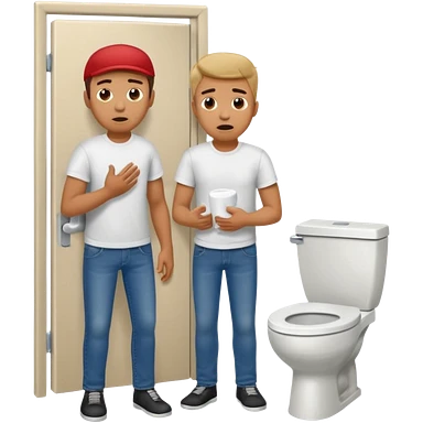 Man using the toilet while the other man is banging on the door begging holding it emoji