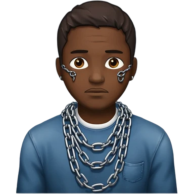 Man, hispanic skin, black hair, black beard, black mustache black eyes black t hoodie, small nose, long emo hair, muscular , round glasses emoji