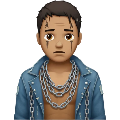Man, hispanic skin, black hair, black beard, black mustache black eyes black t hoodie, small nose, long emo hair, muscular emoji