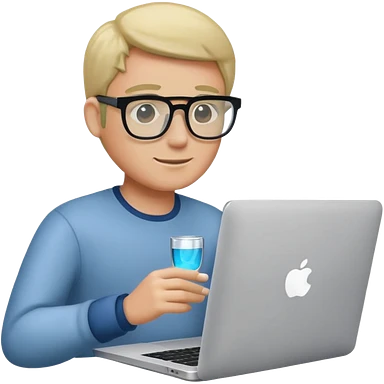 man using macbook wearing glass emoji