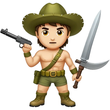 man with a whip portrait, head and shoulders only, whip coiled on shoulder, rugged outfit, confident look, 3D cartoon, mobile game icon style, clean background, no text, no watermark emoji