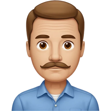 man with mustache, brown hair, 50 years old, shirt, high temple emoji