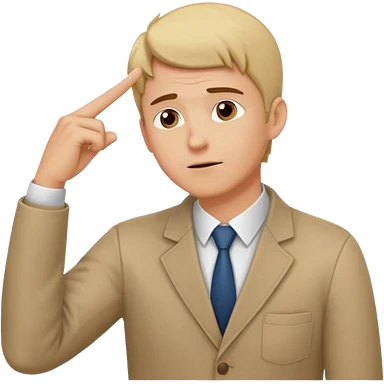 man looking up to the top right, index finger touching his temple, thinking pose emoji