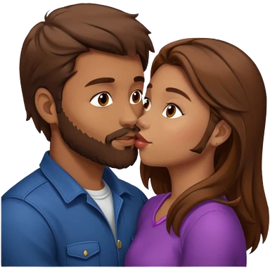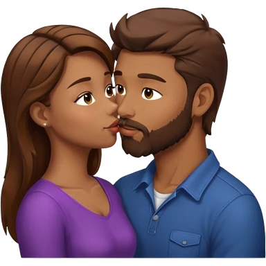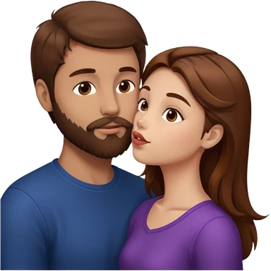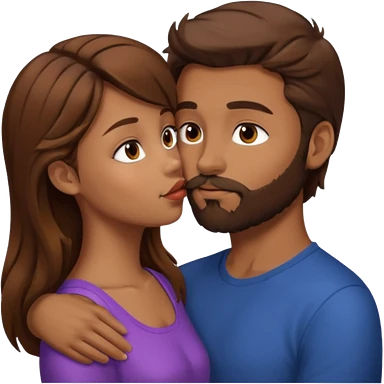 Man with brown hair and a beard kissing a girl with brown hair emoji